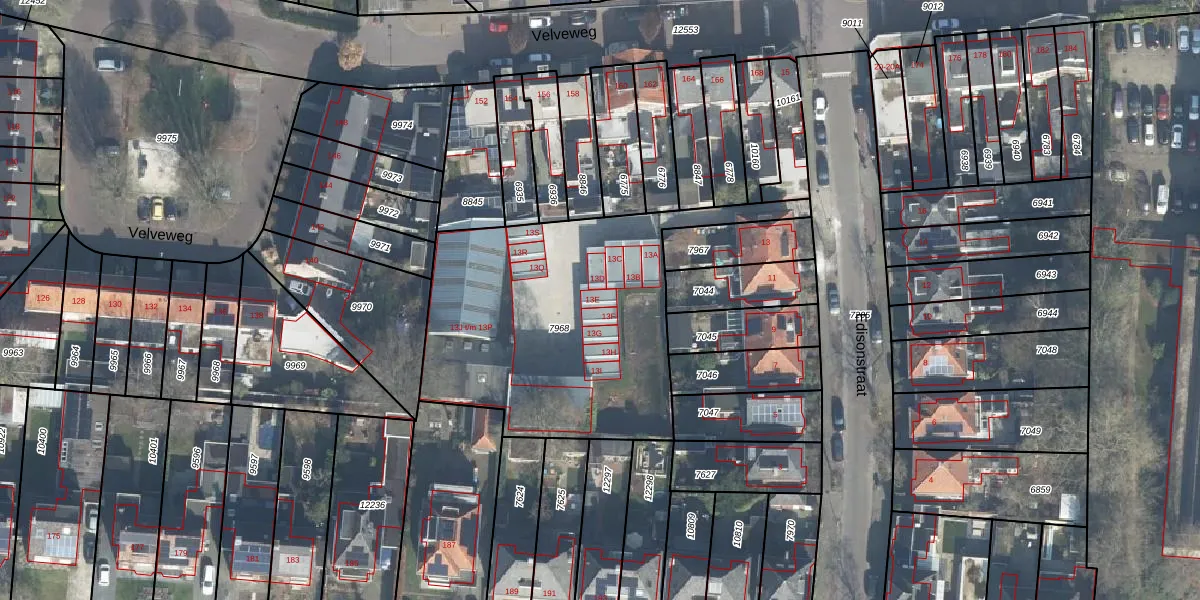 Het perceel waarop Edisonstraat 13-E staat heeft een oppervlakte van 1445 m². Dit is een zeer groot perceel. De perceeloppervlakte wordt geregistreerd door het Kadaster. Gedetailleerde informatie over de maten van dit perceel kunt u vinden in het rapport Kadastrale kaart met maatvoering van Edisonstraat 13-E.