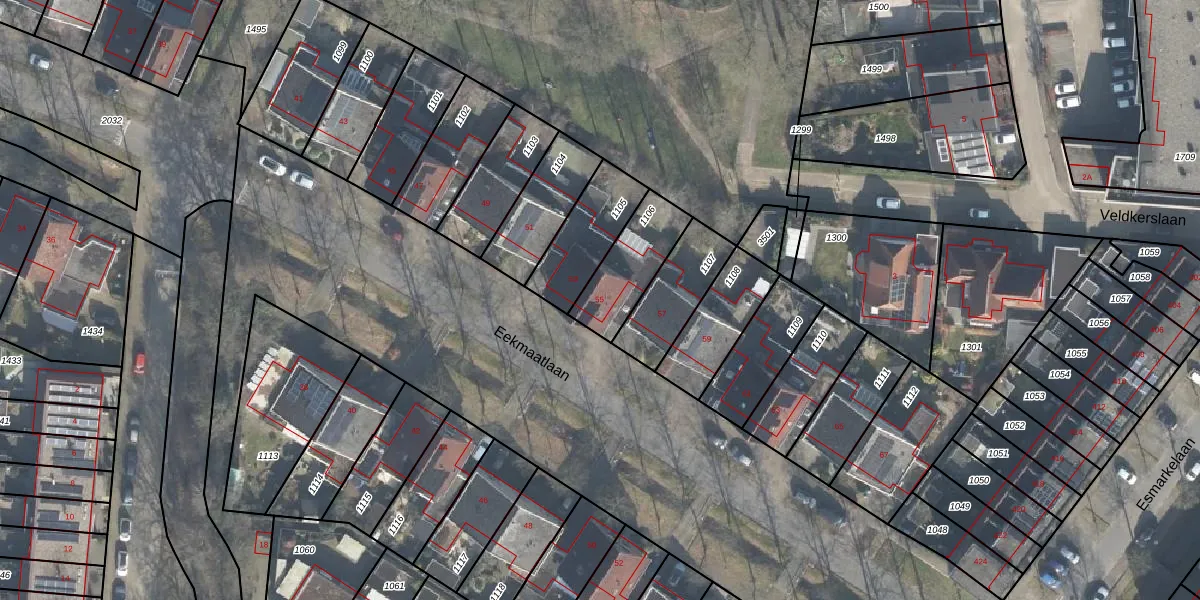 Eekmaatlaan 55 is gelegen op kadastraal perceel LNK00AA1106. Deze kadastrale aanduiding is uniek en wordt gebruikt door het Kadaster om eigendomsrechten en andere zakelijke rechten vast te leggen. Het perceel maakt onderdeel uit van de kadastrale gemeente Lonneker.