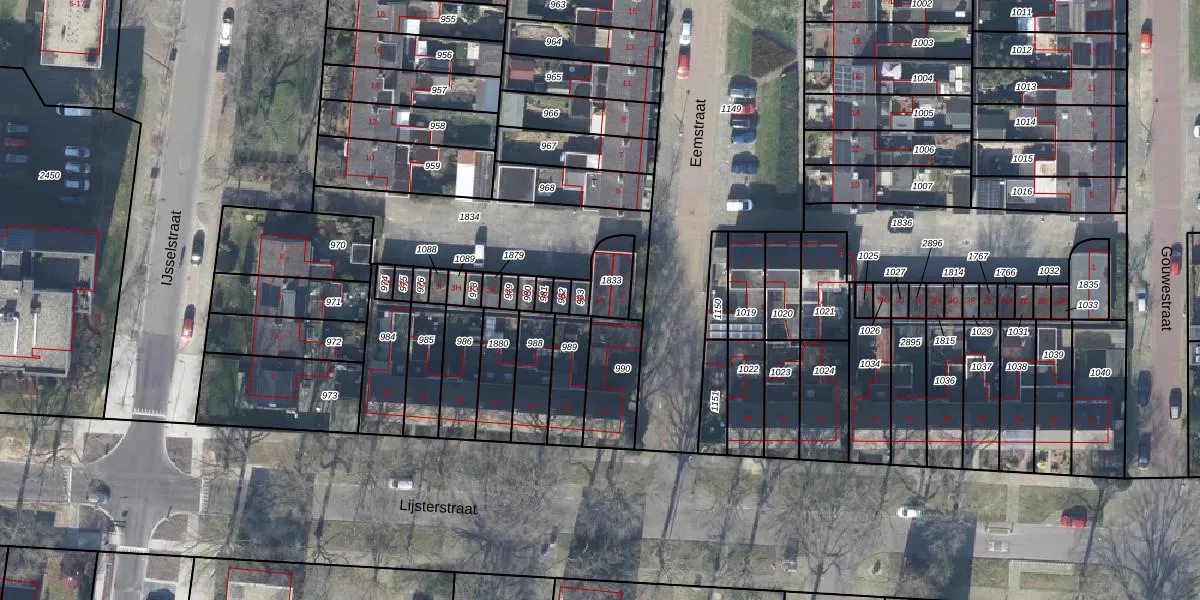Het perceel waarop Eemstraat 1-A staat heeft een oppervlakte van 89 m². Dit is een klein perceel. De perceeloppervlakte wordt geregistreerd door het Kadaster. Gedetailleerde informatie over de maten van dit perceel kunt u vinden in het rapport Kadastrale kaart met maatvoering van Eemstraat 1-A.