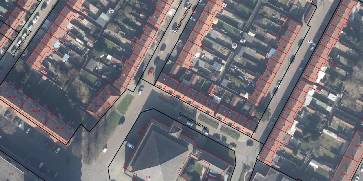 Het perceel waarop Eenhoornstraat 16 staat heeft een oppervlakte van 5430 m². Dit is een zeer groot perceel. De perceeloppervlakte wordt geregistreerd door het Kadaster. Gedetailleerde informatie over de maten van dit perceel kunt u vinden in het rapport Kadastrale kaart met maatvoering van Eenhoornstraat 16.
