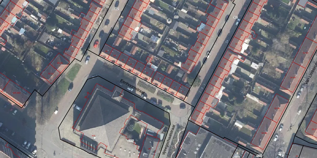 Het perceel waarop Eenhoornstraat 8 staat heeft een oppervlakte van 5430 m². Dit is een zeer groot perceel. De perceeloppervlakte wordt geregistreerd door het Kadaster. Gedetailleerde informatie over de maten van dit perceel kunt u vinden in het rapport Kadastrale kaart met maatvoering van Eenhoornstraat 8.
