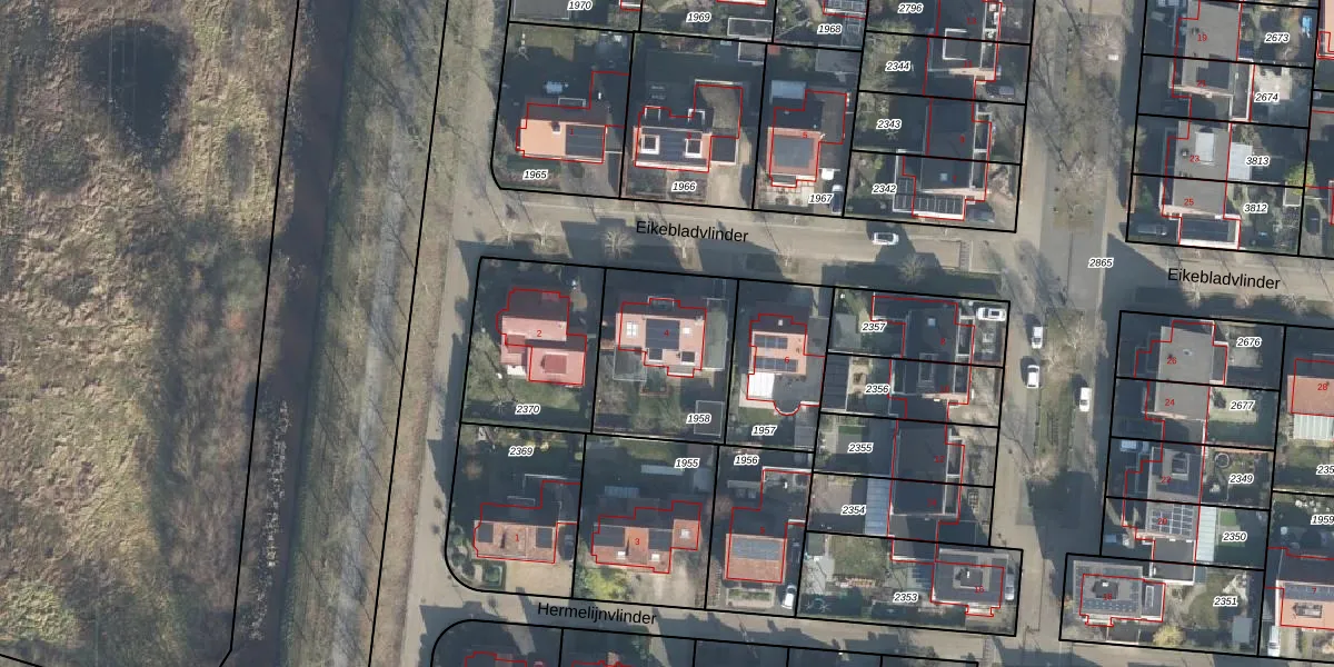 Het perceel waarop Eikebladvlinder 4 staat heeft een oppervlakte van 500 m². Dit is een groot perceel. De perceeloppervlakte wordt geregistreerd door het Kadaster. Gedetailleerde informatie over de maten van dit perceel kunt u vinden in het rapport Kadastrale kaart met maatvoering van Eikebladvlinder 4.