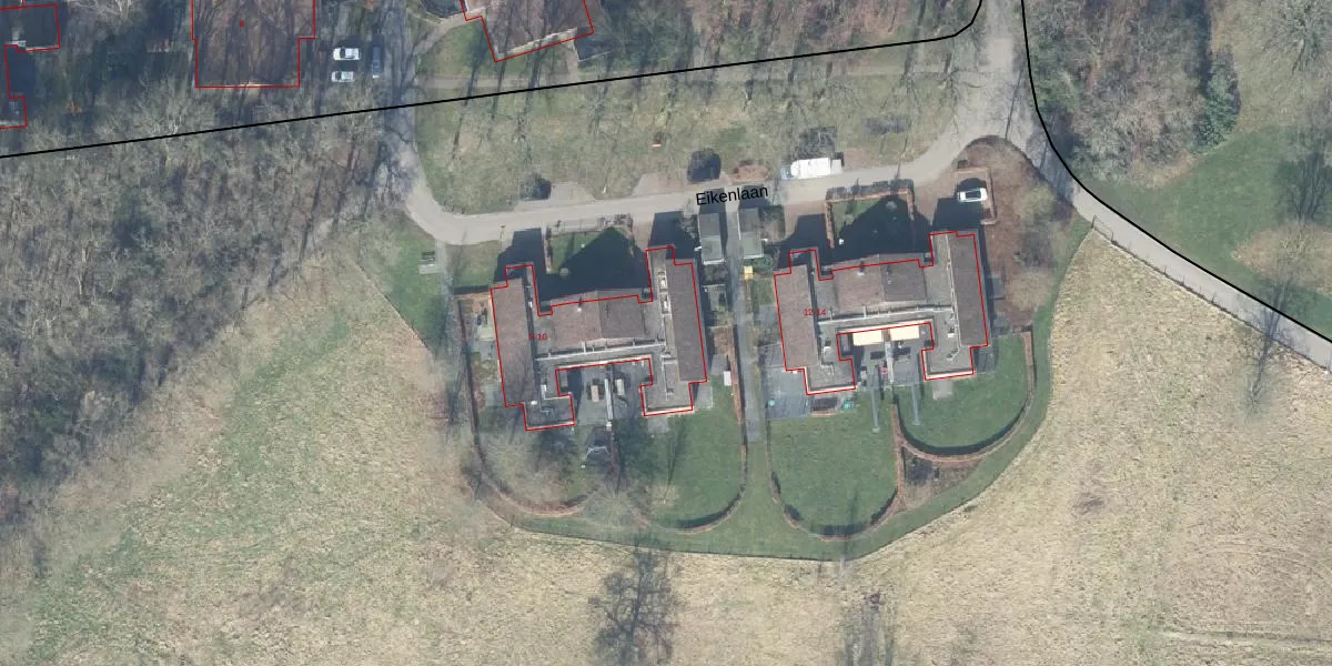 Het perceel waarop Eikenlaan 10 staat heeft een oppervlakte van 4,0 ha. Dit is een zeer groot perceel. De perceeloppervlakte wordt geregistreerd door het Kadaster. Gedetailleerde informatie over de maten van dit perceel kunt u vinden in het rapport Kadastrale kaart met maatvoering van Eikenlaan 10.