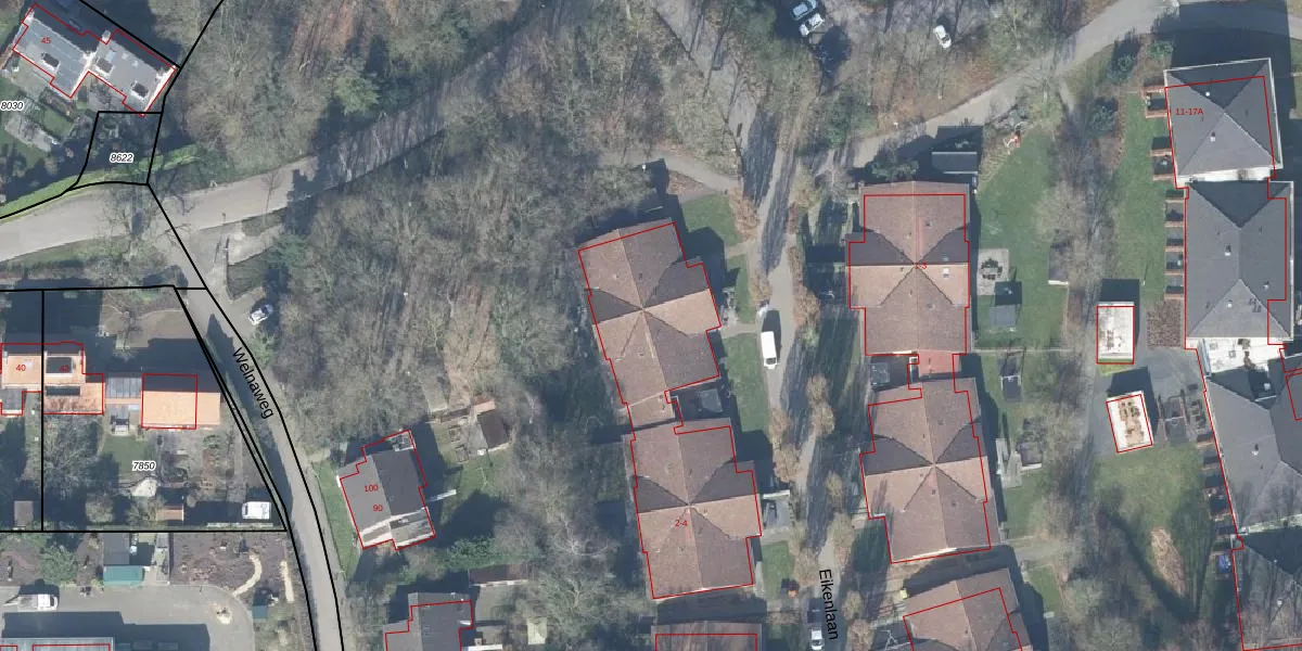 Het perceel waarop Eikenlaan 2 staat heeft een oppervlakte van 12,4 ha. Dit is een zeer groot perceel. De perceeloppervlakte wordt geregistreerd door het Kadaster. Gedetailleerde informatie over de maten van dit perceel kunt u vinden in het rapport Kadastrale kaart met maatvoering van Eikenlaan 2.