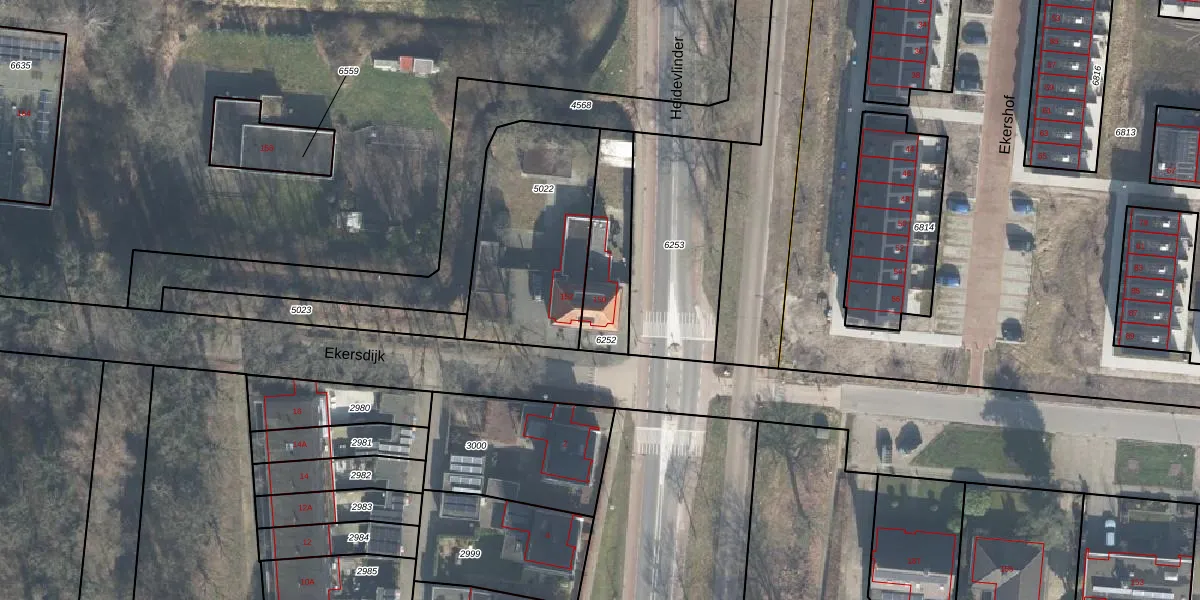 Het perceel waarop Ekersdijk 150 staat heeft een oppervlakte van 258 m². Dit is een middelgroot perceel. De perceeloppervlakte wordt geregistreerd door het Kadaster. Gedetailleerde informatie over de maten van dit perceel kunt u vinden in het rapport Kadastrale kaart met maatvoering van Ekersdijk 150.