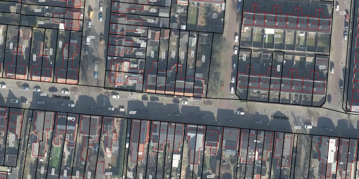 Het perceel waarop Ekersdijk 24 staat heeft een oppervlakte van 189 m². Dit is een middelgroot perceel. De perceeloppervlakte wordt geregistreerd door het Kadaster. Gedetailleerde informatie over de maten van dit perceel kunt u vinden in het rapport Kadastrale kaart met maatvoering van Ekersdijk 24.