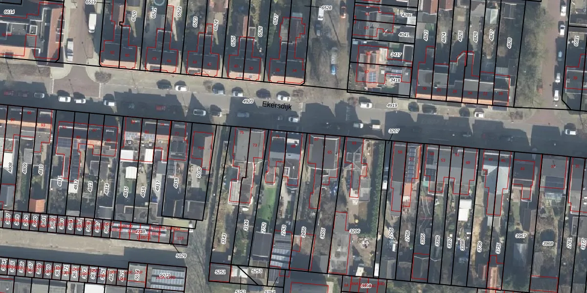 Gebruik de zoekbalk of klik op een perceel voor informatie over de adressen binnen dit perceel.