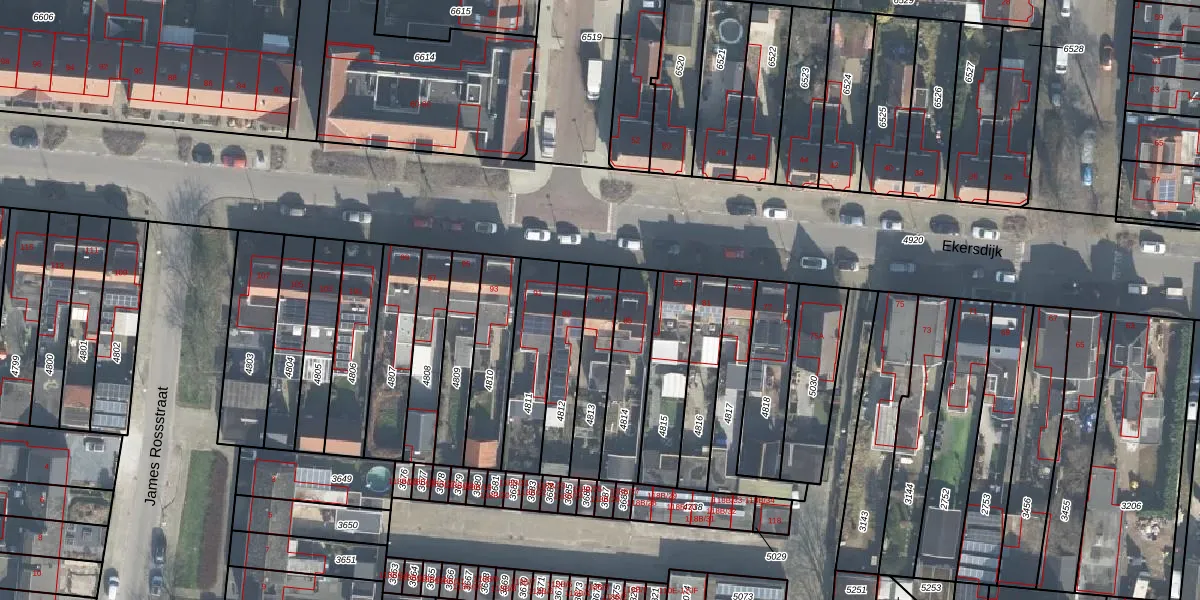 Het perceel waarop Ekersdijk 87 staat heeft een oppervlakte van 179 m². Dit is een middelgroot perceel. De perceeloppervlakte wordt geregistreerd door het Kadaster. Gedetailleerde informatie over de maten van dit perceel kunt u vinden in het rapport Kadastrale kaart met maatvoering van Ekersdijk 87.