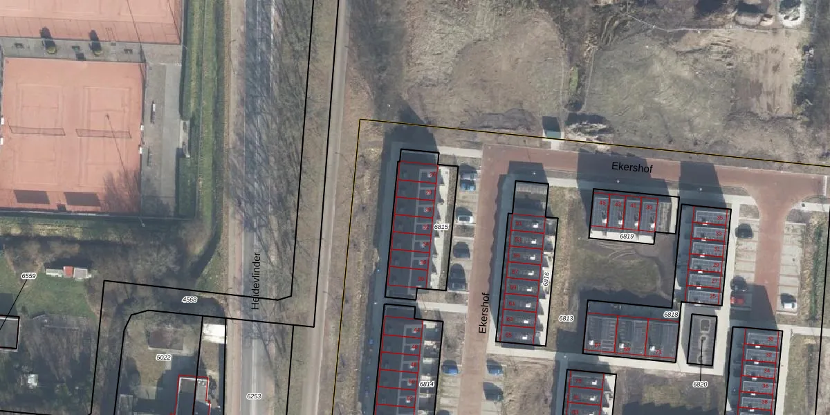 Het perceel waarop Ekershof 30 staat heeft een oppervlakte van 486 m². Dit is een groot perceel. De perceeloppervlakte wordt geregistreerd door het Kadaster. Gedetailleerde informatie over de maten van dit perceel kunt u vinden in het rapport Kadastrale kaart met maatvoering van Ekershof 30.