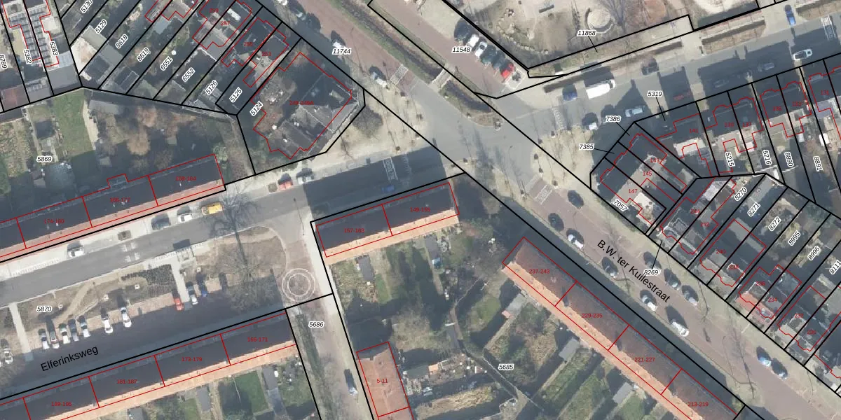 Het perceel waarop Elferinksweg 149 staat heeft een oppervlakte van 5635 m². Dit is een zeer groot perceel. De perceeloppervlakte wordt geregistreerd door het Kadaster. Gedetailleerde informatie over de maten van dit perceel kunt u vinden in het rapport Kadastrale kaart met maatvoering van Elferinksweg 149.