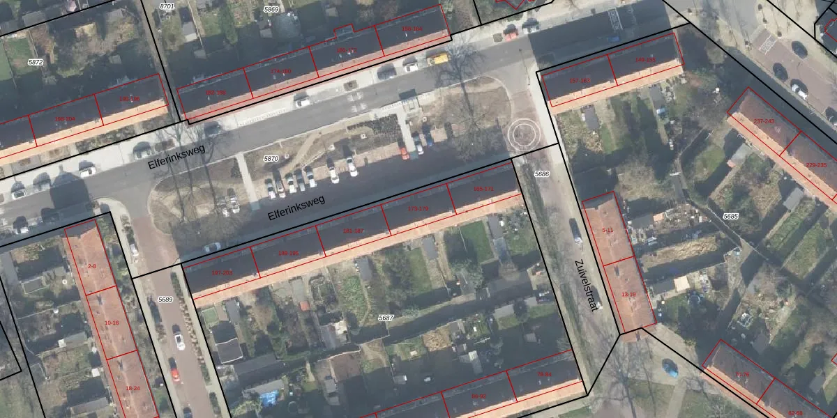 Elferinksweg 173 is gelegen op kadastraal perceel LNK00N5687. Deze kadastrale aanduiding is uniek en wordt gebruikt door het Kadaster om eigendomsrechten en andere zakelijke rechten vast te leggen. Het perceel maakt onderdeel uit van de kadastrale gemeente Lonneker.