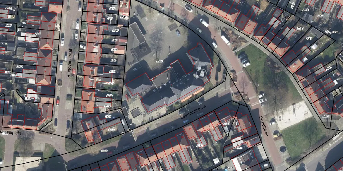 Gebruik de zoekbalk of klik op een perceel voor informatie over de adressen binnen dit perceel.