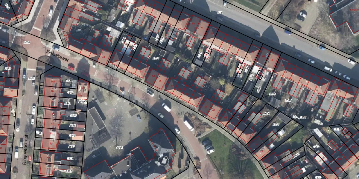 Het perceel waarop Elshofstraat 59 staat heeft een oppervlakte van 4495 m². Dit is een zeer groot perceel. De perceeloppervlakte wordt geregistreerd door het Kadaster. Gedetailleerde informatie over de maten van dit perceel kunt u vinden in het rapport Kadastrale kaart met maatvoering van Elshofstraat 59.
