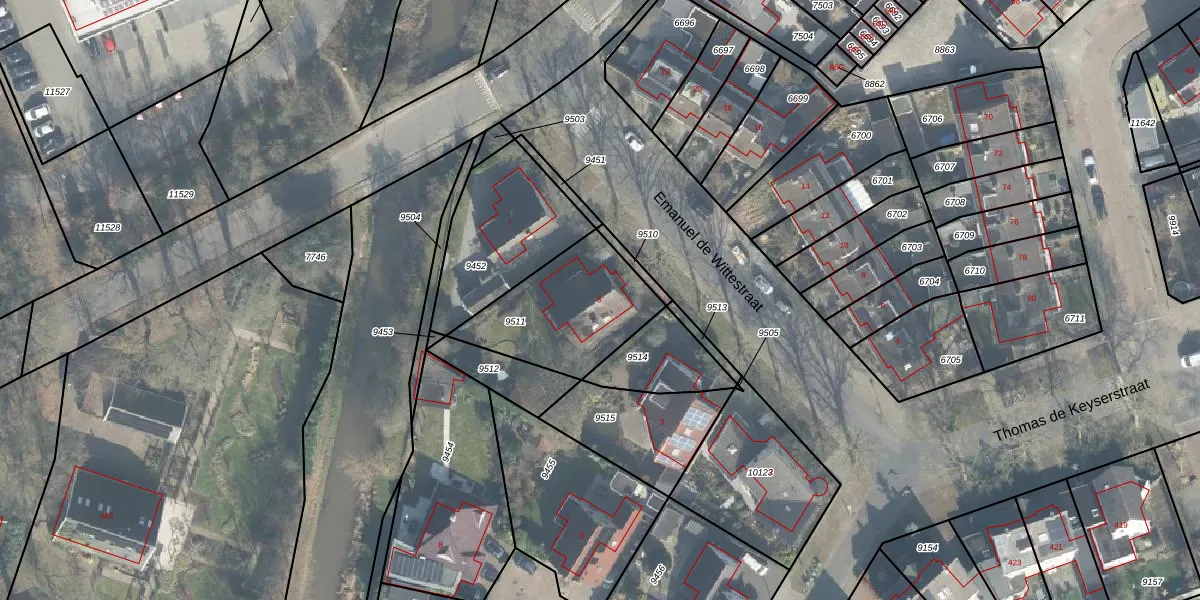 Emanuel de Wittestraat 5 is gelegen op kadastraal perceel LNK00N9511. Deze kadastrale aanduiding is uniek en wordt gebruikt door het Kadaster om eigendomsrechten en andere zakelijke rechten vast te leggen. Het perceel maakt onderdeel uit van de kadastrale gemeente Lonneker.