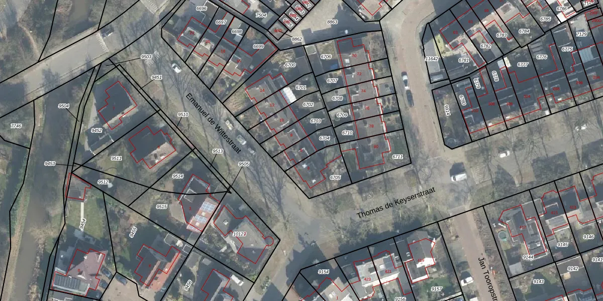 Emanuel de Wittestraat 6 is gelegen op kadastraal perceel LNK00N6704. Deze kadastrale aanduiding is uniek en wordt gebruikt door het Kadaster om eigendomsrechten en andere zakelijke rechten vast te leggen. Het perceel maakt onderdeel uit van de kadastrale gemeente Lonneker.