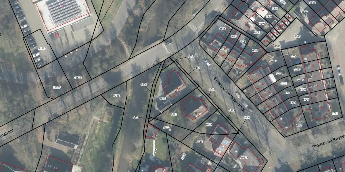 Emanuel de Wittestraat 7 is gelegen op kadastraal perceel LNK00N9452. Deze kadastrale aanduiding is uniek en wordt gebruikt door het Kadaster om eigendomsrechten en andere zakelijke rechten vast te leggen. Het perceel maakt onderdeel uit van de kadastrale gemeente Lonneker.