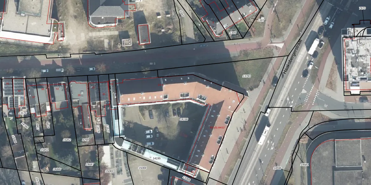Het adres is gelegen op perceel 14196 in de sectie D en de kadastrale gemeente Enschede. De kadastrale aanduiding is aldus ESD00-D-14196. De oppervlakte van het perceel is 2603 m². Dat is groter dan gemiddeld in Enschede, waar de gemiddelde perceeloppervlakte op 548,39 m² ligt. De grootste perceeloppervlakte in de kadastrale gemeente is 10,7 ha. De kleinste oppervlakte bedraagt 0 m². Er zijn 74 adressen aanwezig op het perceel. De huidige grenzen van het perceel zijn digitaal in de Basisregistratie Kadaster (BRK) geregistreerd op 23-12-2004.