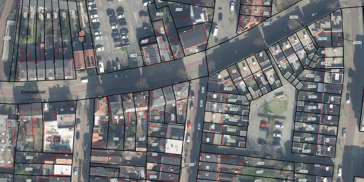 Het perceel waarop Emmastraat 119 staat heeft een oppervlakte van 155 m². Dit is een middelgroot perceel. De perceeloppervlakte wordt geregistreerd door het Kadaster. Gedetailleerde informatie over de maten van dit perceel kunt u vinden in het rapport Kadastrale kaart met maatvoering van Emmastraat 119.