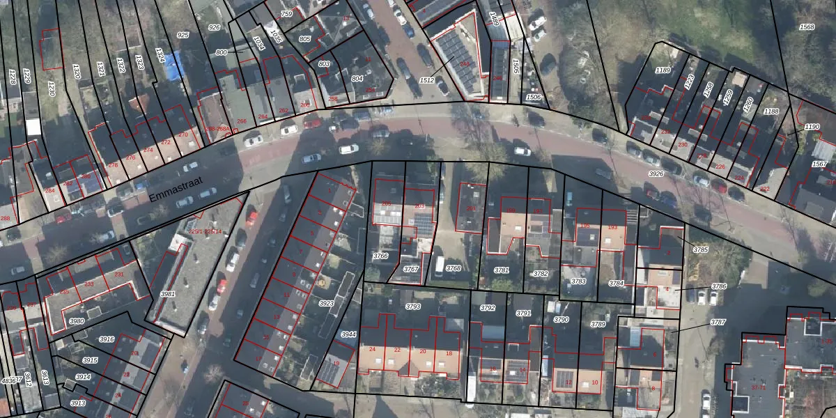 Het perceel waarop Emmastraat 203 staat heeft een oppervlakte van 235 m². Dit is een middelgroot perceel. De perceeloppervlakte wordt geregistreerd door het Kadaster. Gedetailleerde informatie over de maten van dit perceel kunt u vinden in het rapport Kadastrale kaart met maatvoering van Emmastraat 203.