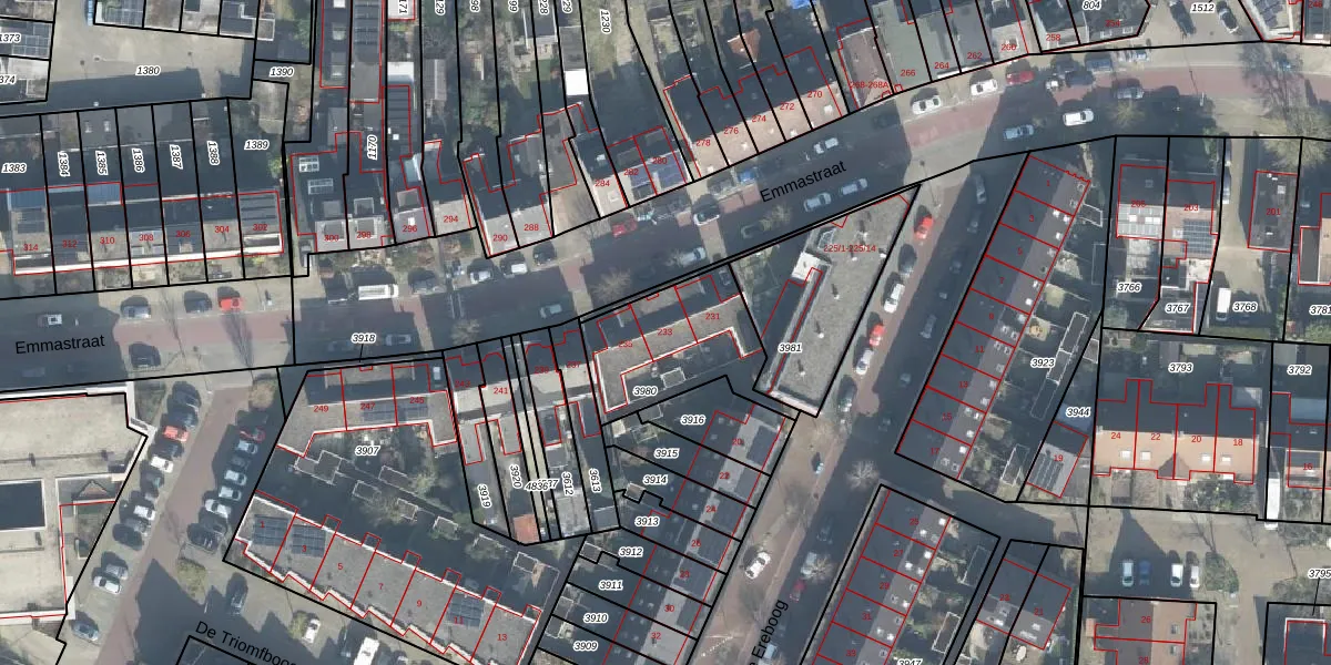 Het perceel waarop Emmastraat 233 staat heeft een oppervlakte van 429 m². Dit is een groot perceel. De perceeloppervlakte wordt geregistreerd door het Kadaster. Gedetailleerde informatie over de maten van dit perceel kunt u vinden in het rapport Kadastrale kaart met maatvoering van Emmastraat 233.