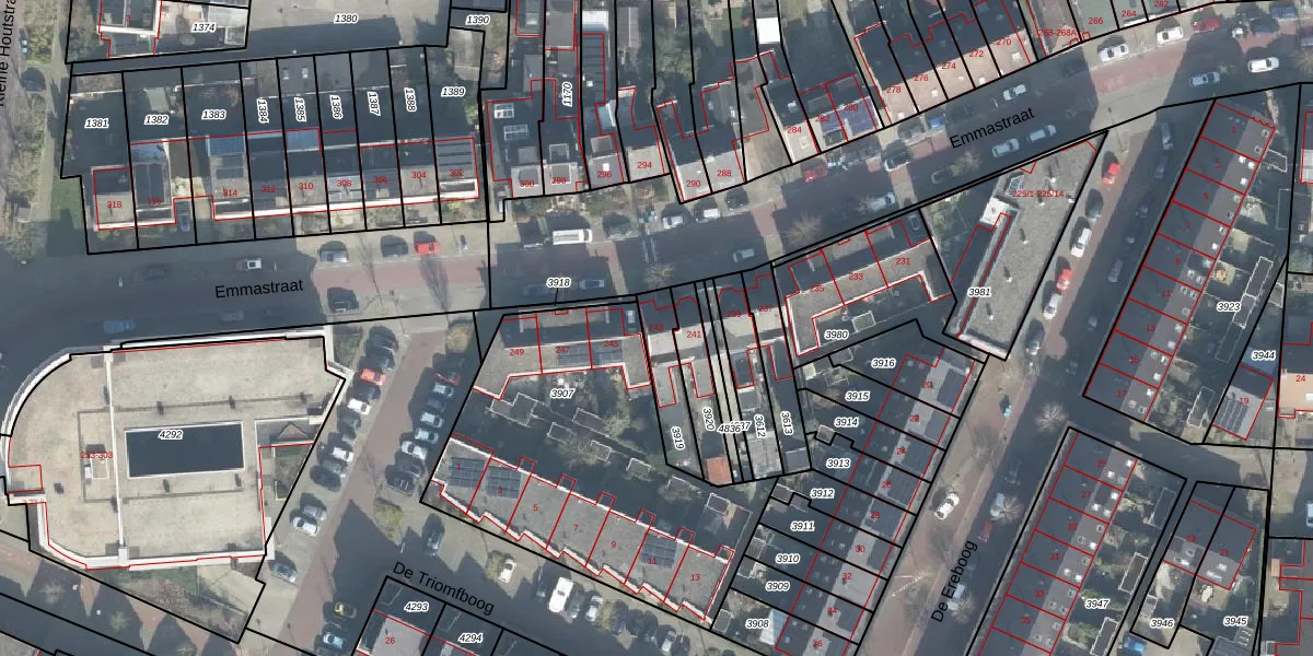 Gebruik de zoekbalk of klik op een perceel voor informatie over de adressen binnen dit perceel.