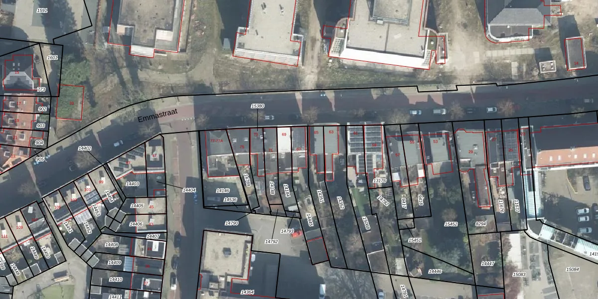 Het perceel waarop Emmastraat 67 staat heeft een oppervlakte van 257 m². Dit is een middelgroot perceel. De perceeloppervlakte wordt geregistreerd door het Kadaster. Gedetailleerde informatie over de maten van dit perceel kunt u vinden in het rapport Kadastrale kaart met maatvoering van Emmastraat 67.