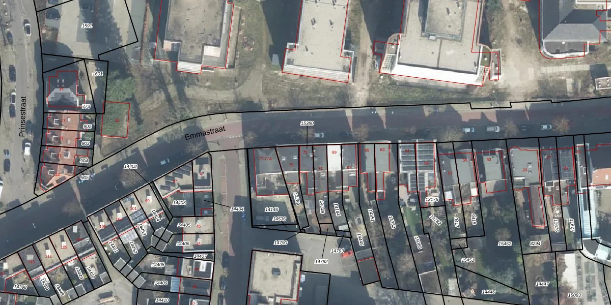 Het perceel waarop Emmastraat 73 staat heeft een oppervlakte van 124 m². Dit is een middelgroot perceel. De perceeloppervlakte wordt geregistreerd door het Kadaster. Gedetailleerde informatie over de maten van dit perceel kunt u vinden in het rapport Kadastrale kaart met maatvoering van Emmastraat 73.