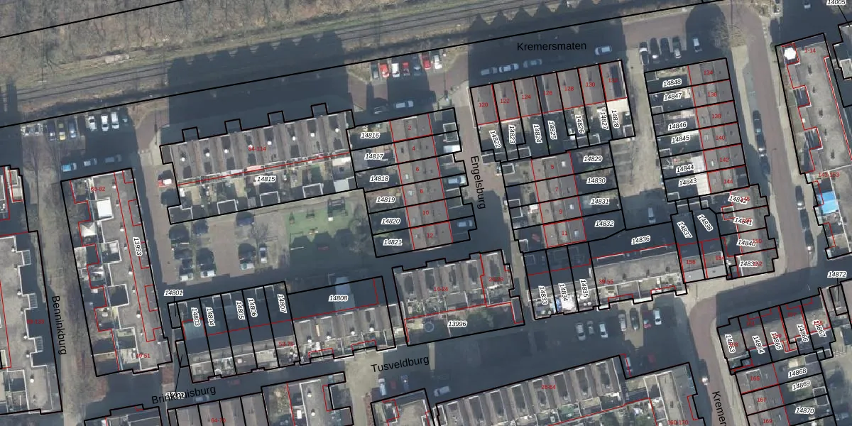 Het perceel waarop Engelsburg 10 staat heeft een oppervlakte van 119 m². Dit is een middelgroot perceel. De perceeloppervlakte wordt geregistreerd door het Kadaster. Gedetailleerde informatie over de maten van dit perceel kunt u vinden in het rapport Kadastrale kaart met maatvoering van Engelsburg 10.