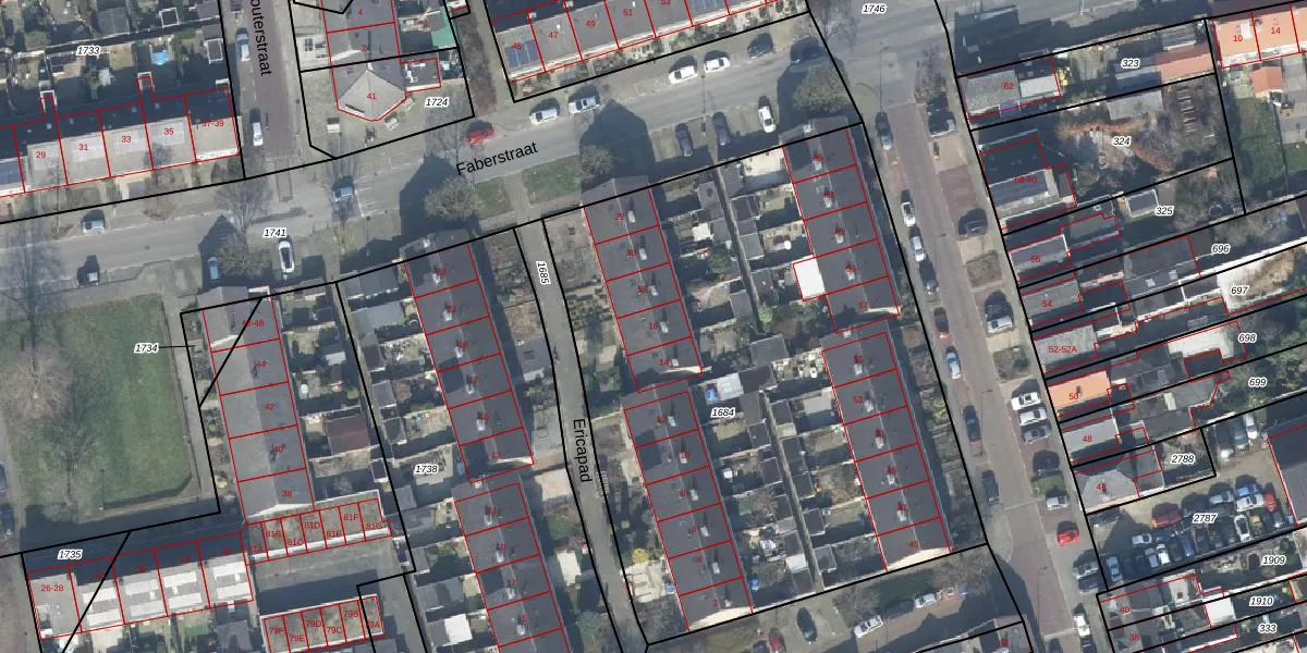 Het perceel waarop Ericapad 16 staat heeft een oppervlakte van 3589 m². Dit is een zeer groot perceel. De perceeloppervlakte wordt geregistreerd door het Kadaster. Gedetailleerde informatie over de maten van dit perceel kunt u vinden in het rapport Kadastrale kaart met maatvoering van Ericapad 16.