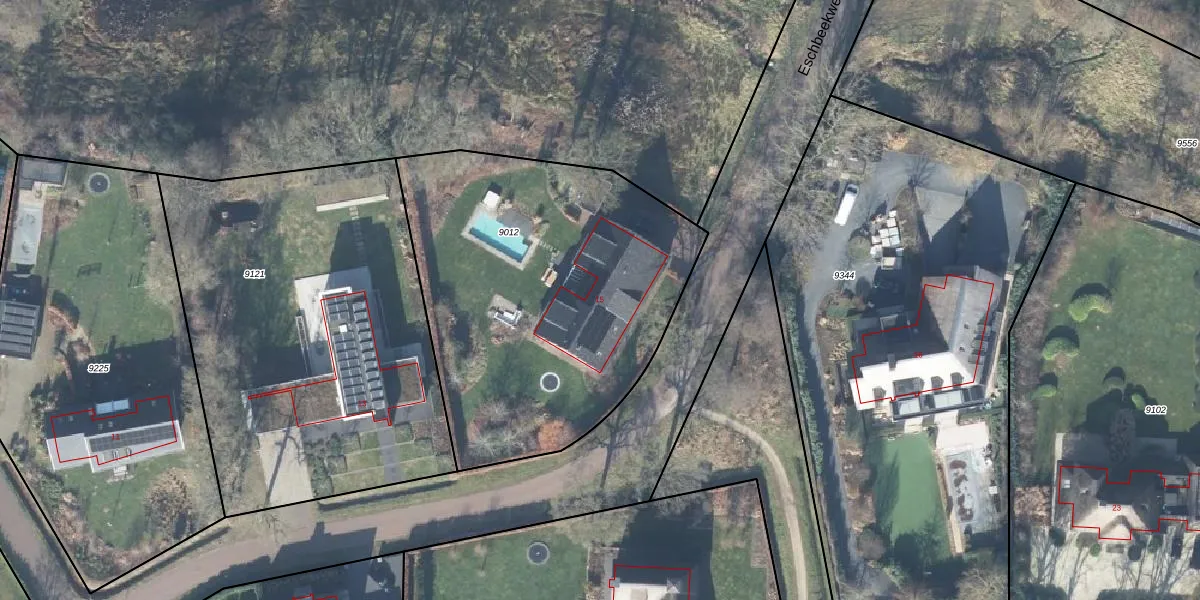 Eschbeekweg 15 is gelegen op kadastraal perceel LNK00C9012. Deze kadastrale aanduiding is uniek en wordt gebruikt door het Kadaster om eigendomsrechten en andere zakelijke rechten vast te leggen. Het perceel maakt onderdeel uit van de kadastrale gemeente Lonneker.
