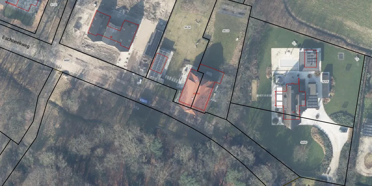 Eschbeekweg 44 is gelegen op kadastraal perceel LNK00C9634. Deze kadastrale aanduiding is uniek en wordt gebruikt door het Kadaster om eigendomsrechten en andere zakelijke rechten vast te leggen. Het perceel maakt onderdeel uit van de kadastrale gemeente Lonneker.