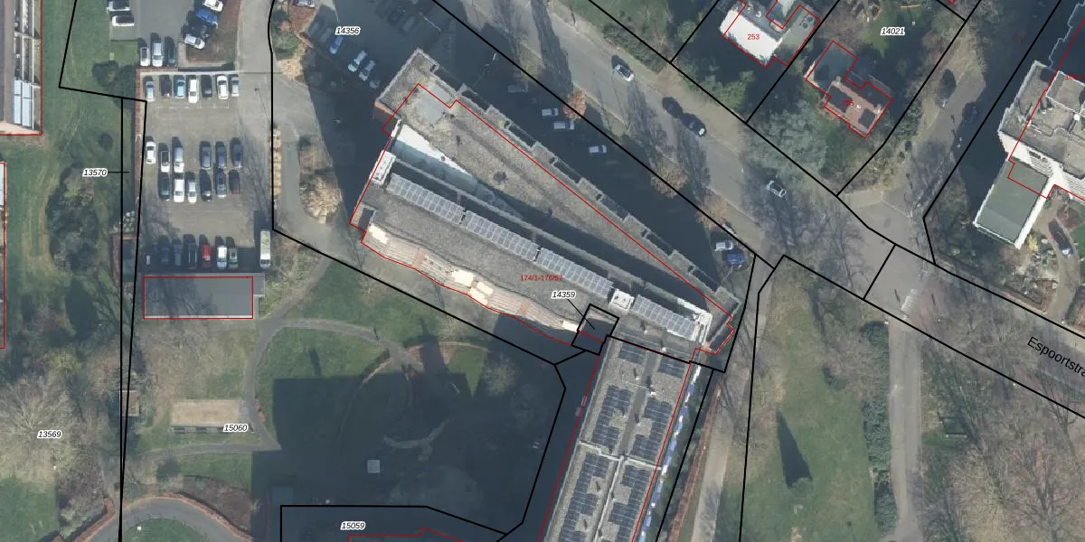 Het perceel waarop Espoortstraat 174-4 staat heeft een oppervlakte van 4045 m². Dit is een zeer groot perceel. De perceeloppervlakte wordt geregistreerd door het Kadaster. Gedetailleerde informatie over de maten van dit perceel kunt u vinden in het rapport Kadastrale kaart met maatvoering van Espoortstraat 174-4.