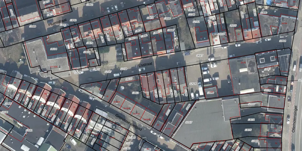 Gebruik de zoekbalk of klik op een perceel voor informatie over de adressen binnen dit perceel.