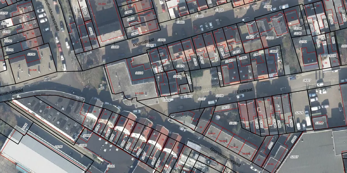 Gebruik de zoekbalk of klik op een perceel voor informatie over de adressen binnen dit perceel.