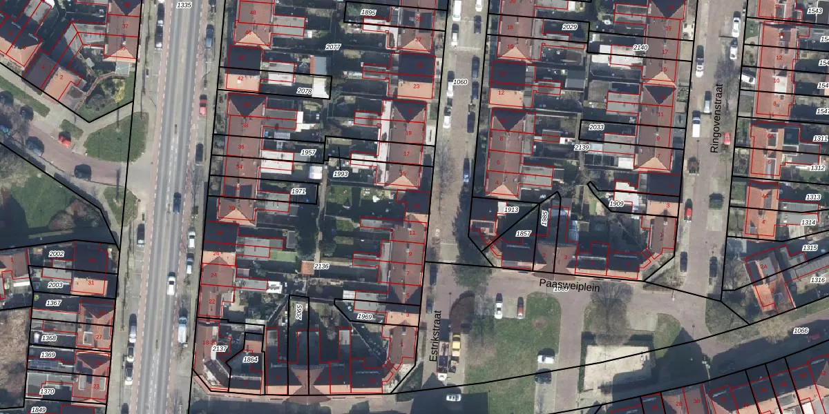 Het perceel waarop Estrikstraat 13 staat heeft een oppervlakte van 2373 m². Dit is een zeer groot perceel. De perceeloppervlakte wordt geregistreerd door het Kadaster. Gedetailleerde informatie over de maten van dit perceel kunt u vinden in het rapport Kadastrale kaart met maatvoering van Estrikstraat 13.