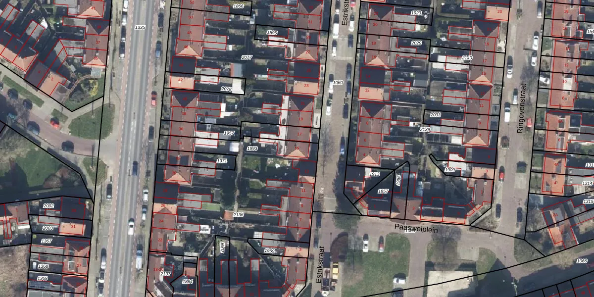 Het perceel waarop Estrikstraat 15 staat heeft een oppervlakte van 2373 m². Dit is een zeer groot perceel. De perceeloppervlakte wordt geregistreerd door het Kadaster. Gedetailleerde informatie over de maten van dit perceel kunt u vinden in het rapport Kadastrale kaart met maatvoering van Estrikstraat 15.