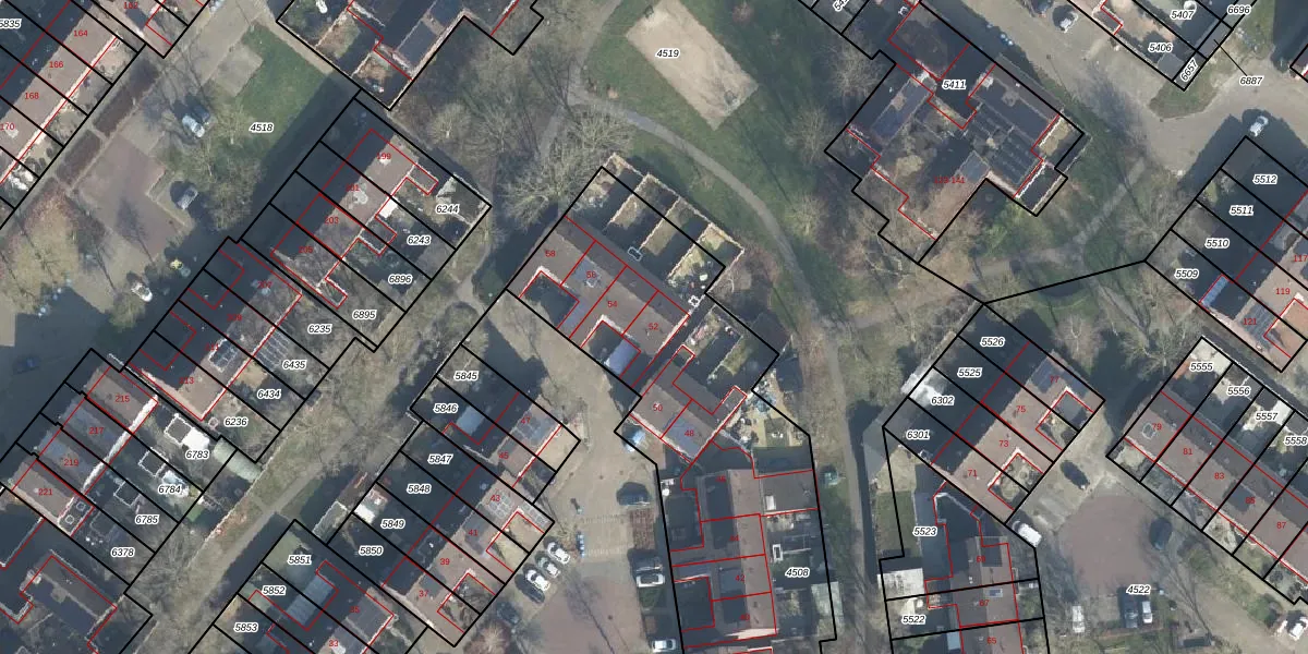 Het perceel waarop Etudestraat 52 staat heeft een oppervlakte van 2954 m². Dit is een zeer groot perceel. De perceeloppervlakte wordt geregistreerd door het Kadaster. Gedetailleerde informatie over de maten van dit perceel kunt u vinden in het rapport Kadastrale kaart met maatvoering van Etudestraat 52.