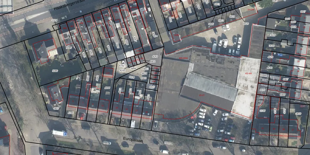 Het perceel waarop Europalaan 19-B staat heeft een oppervlakte van 16 m². Dit is een klein perceel. De perceeloppervlakte wordt geregistreerd door het Kadaster. Gedetailleerde informatie over de maten van dit perceel kunt u vinden in het rapport Kadastrale kaart met maatvoering van Europalaan 19-B.