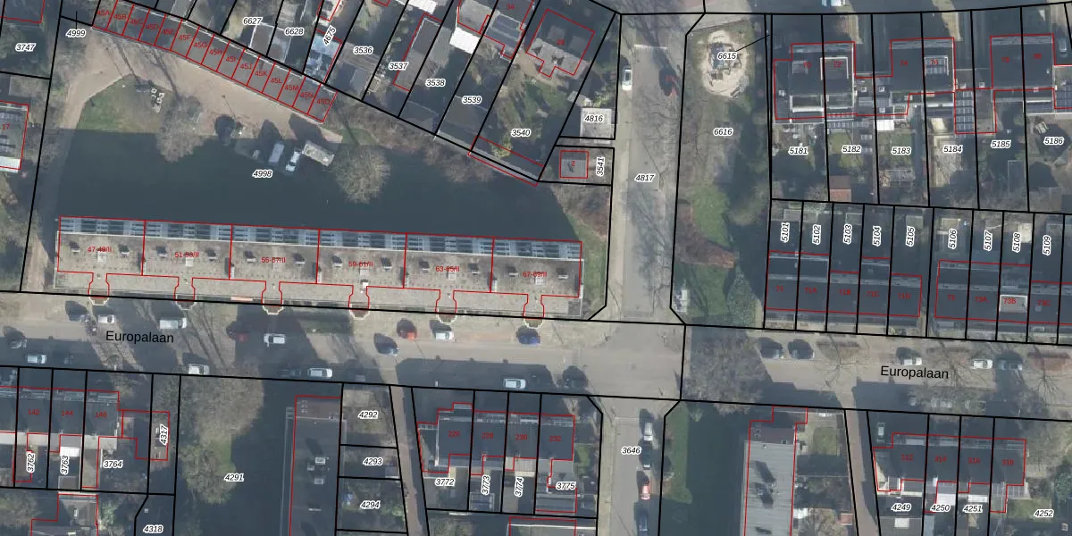 Het perceel waarop Europalaan 69-B staat heeft een oppervlakte van 4342 m². Dit is een zeer groot perceel. De perceeloppervlakte wordt geregistreerd door het Kadaster. Gedetailleerde informatie over de maten van dit perceel kunt u vinden in het rapport Kadastrale kaart met maatvoering van Europalaan 69-B.