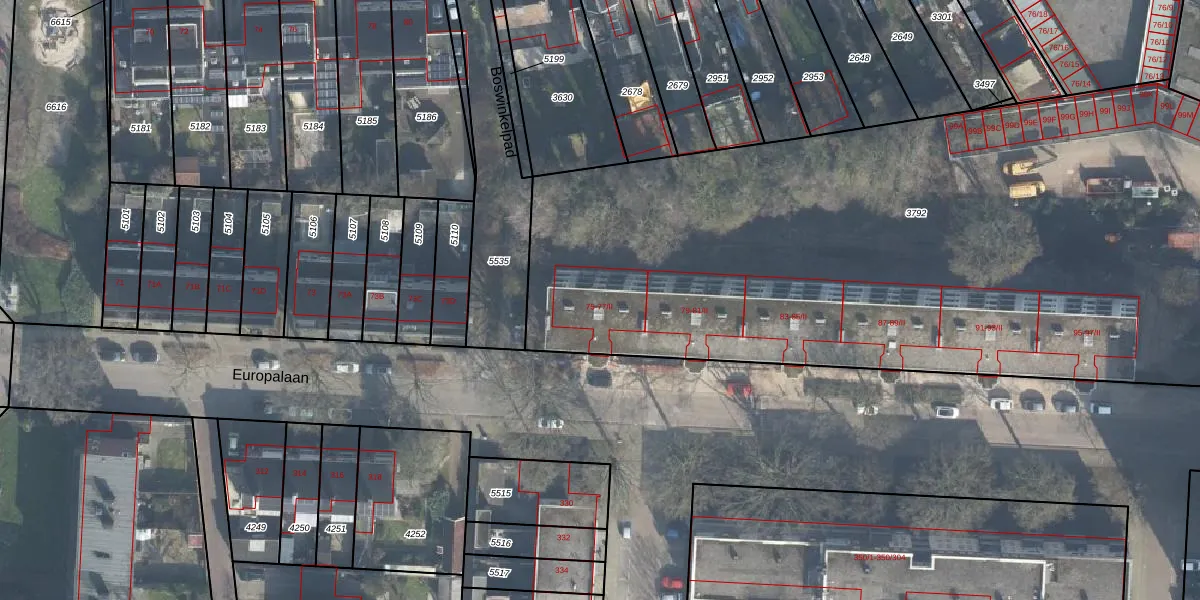 Het perceel waarop Europalaan 77-A staat heeft een oppervlakte van 4842 m². Dit is een zeer groot perceel. De perceeloppervlakte wordt geregistreerd door het Kadaster. Gedetailleerde informatie over de maten van dit perceel kunt u vinden in het rapport Kadastrale kaart met maatvoering van Europalaan 77-A.