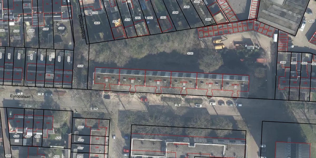 Het perceel waarop Europalaan 83 staat heeft een oppervlakte van 4842 m². Dit is een zeer groot perceel. De perceeloppervlakte wordt geregistreerd door het Kadaster. Gedetailleerde informatie over de maten van dit perceel kunt u vinden in het rapport Kadastrale kaart met maatvoering van Europalaan 83.
