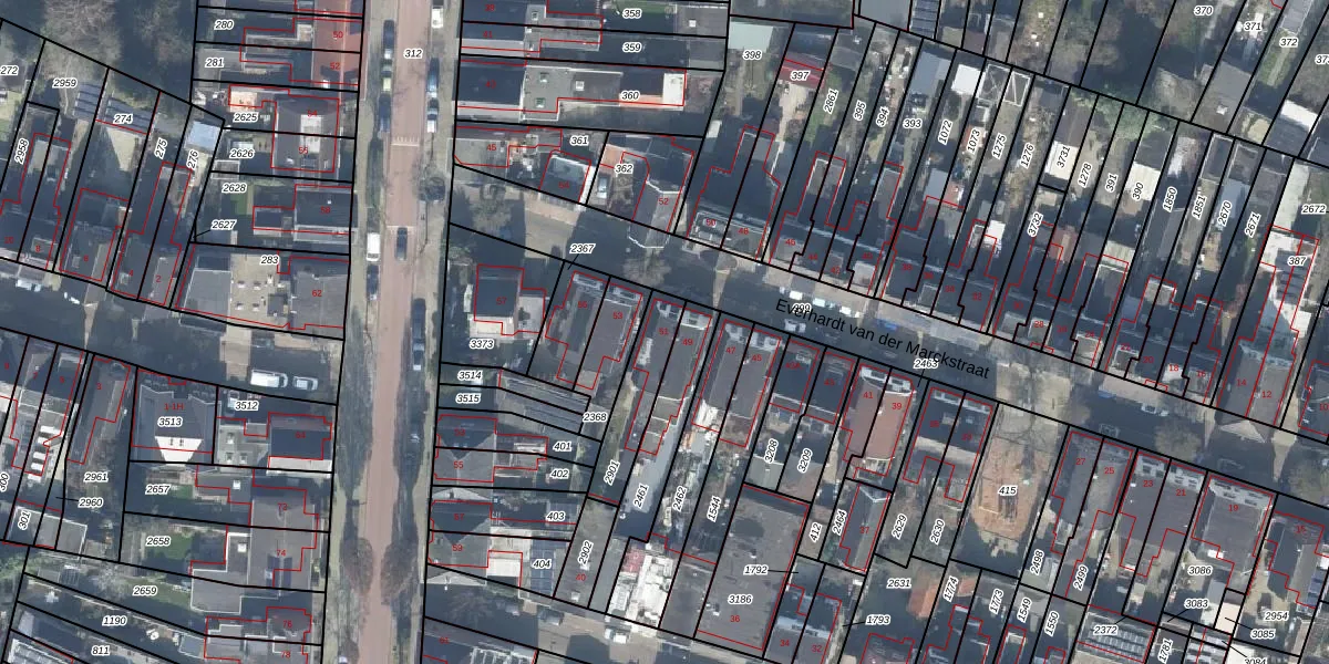 Het perceel waarop Everhardt van der Marckstraat 51 staat heeft een oppervlakte van 181 m². Dit is een middelgroot perceel. De perceeloppervlakte wordt geregistreerd door het Kadaster. Gedetailleerde informatie over de maten van dit perceel kunt u vinden in het rapport Kadastrale kaart met maatvoering van Everhardt van der Marckstraat 51.