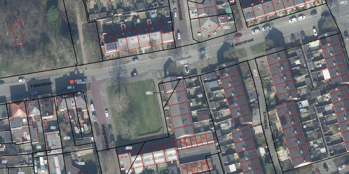 Het perceel waarop Faberstraat 46 staat heeft een oppervlakte van 95 m². Dit is een klein perceel. De perceeloppervlakte wordt geregistreerd door het Kadaster. Gedetailleerde informatie over de maten van dit perceel kunt u vinden in het rapport Kadastrale kaart met maatvoering van Faberstraat 46.