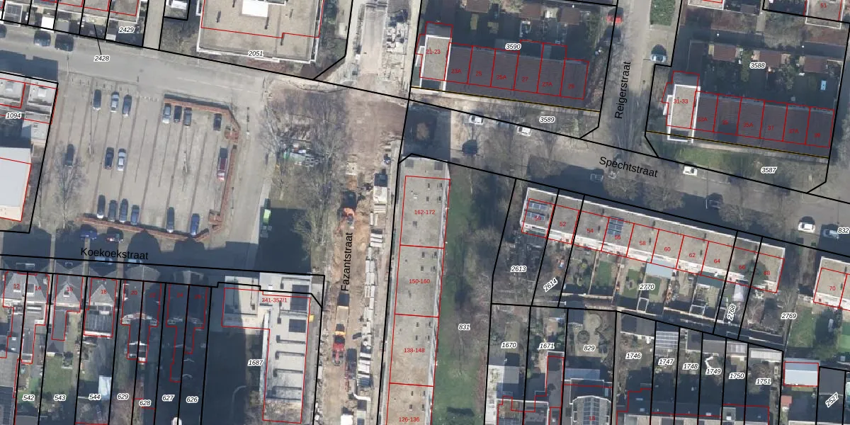 Het perceel waarop Fazantstraat 172 staat heeft een oppervlakte van 1755 m². Dit is een zeer groot perceel. De perceeloppervlakte wordt geregistreerd door het Kadaster. Gedetailleerde informatie over de maten van dit perceel kunt u vinden in het rapport Kadastrale kaart met maatvoering van Fazantstraat 172.