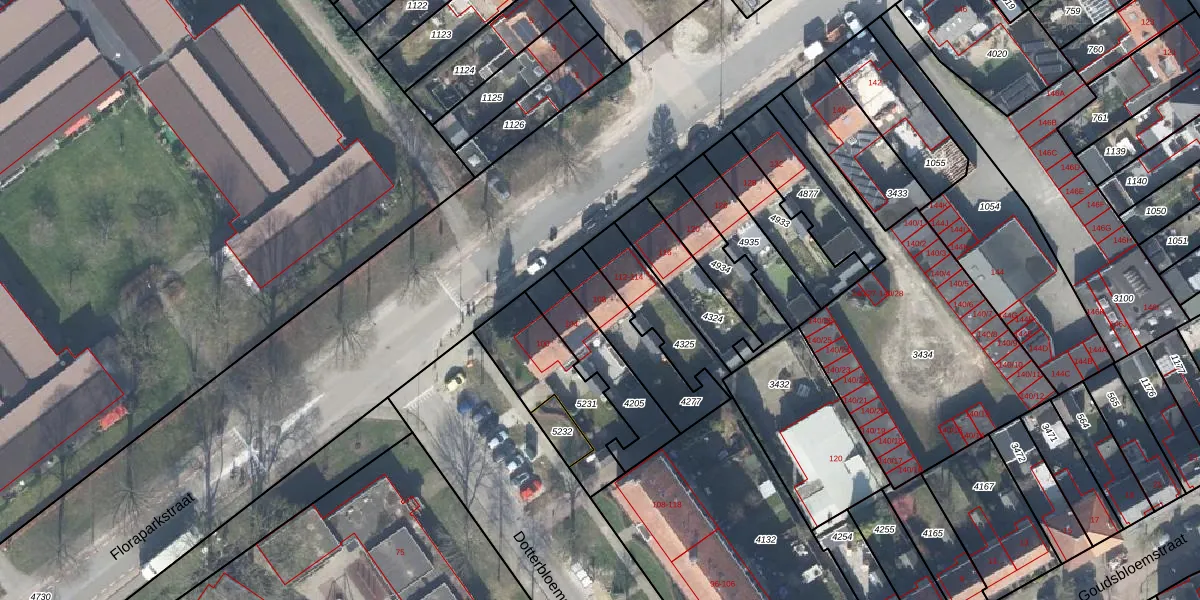 Het perceel waarop Floraparkstraat 108 staat heeft een oppervlakte van 232 m². Dit is een middelgroot perceel. De perceeloppervlakte wordt geregistreerd door het Kadaster. Gedetailleerde informatie over de maten van dit perceel kunt u vinden in het rapport Kadastrale kaart met maatvoering van Floraparkstraat 108.