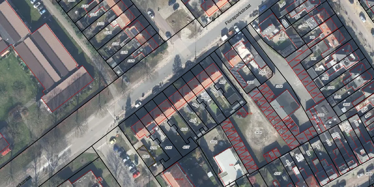 Het perceel waarop Floraparkstraat 120 staat heeft een oppervlakte van 196 m². Dit is een middelgroot perceel. De perceeloppervlakte wordt geregistreerd door het Kadaster. Gedetailleerde informatie over de maten van dit perceel kunt u vinden in het rapport Kadastrale kaart met maatvoering van Floraparkstraat 120.