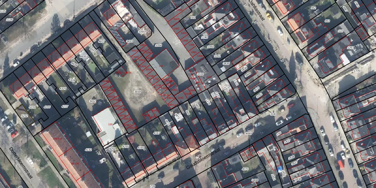 Het perceel waarop Floraparkstraat 144-B staat heeft een oppervlakte van 619 m². Dit is een groot perceel. De perceeloppervlakte wordt geregistreerd door het Kadaster. Gedetailleerde informatie over de maten van dit perceel kunt u vinden in het rapport Kadastrale kaart met maatvoering van Floraparkstraat 144-B.