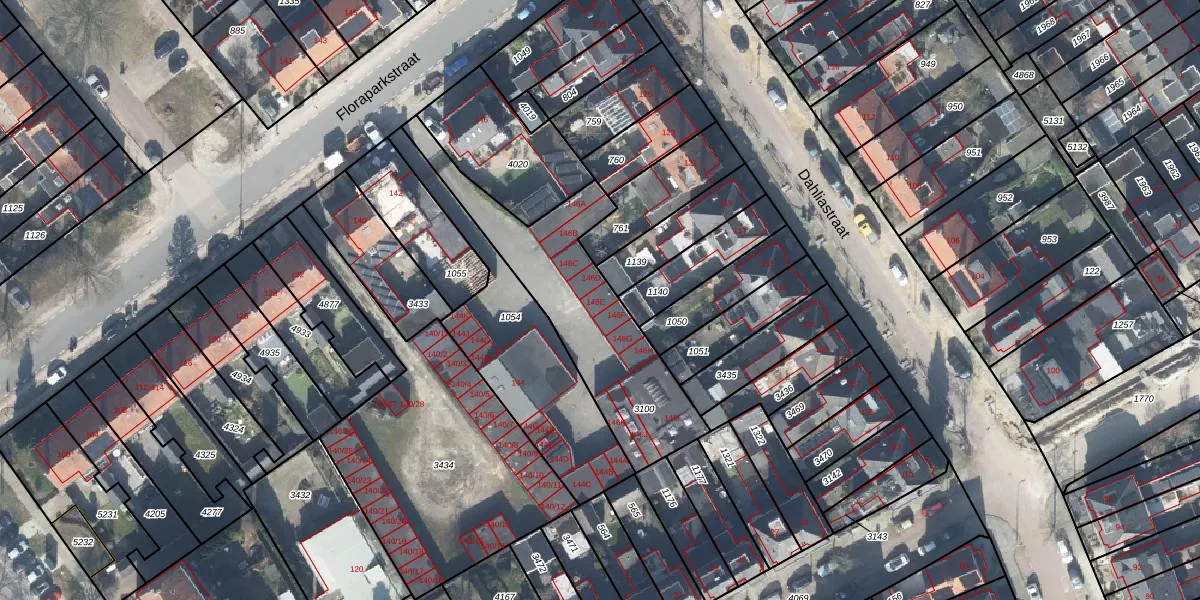 Het perceel waarop Floraparkstraat 146-E staat heeft een oppervlakte van 716 m². Dit is een groot perceel. De perceeloppervlakte wordt geregistreerd door het Kadaster. Gedetailleerde informatie over de maten van dit perceel kunt u vinden in het rapport Kadastrale kaart met maatvoering van Floraparkstraat 146-E.