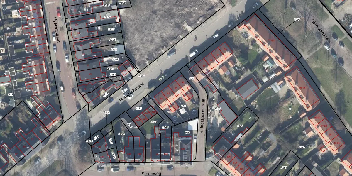 Het perceel waarop Floraparkstraat 44 staat heeft een oppervlakte van 530 m². Dit is een groot perceel. De perceeloppervlakte wordt geregistreerd door het Kadaster. Gedetailleerde informatie over de maten van dit perceel kunt u vinden in het rapport Kadastrale kaart met maatvoering van Floraparkstraat 44.
