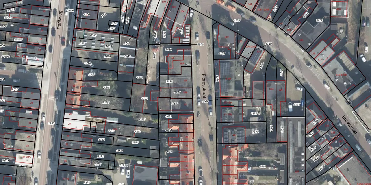 Floresstraat 18-A is gelegen op kadastraal perceel ESD00E3437. Deze kadastrale aanduiding is uniek en wordt gebruikt door het Kadaster om eigendomsrechten en andere zakelijke rechten vast te leggen. Het perceel maakt onderdeel uit van de kadastrale gemeente Enschede.